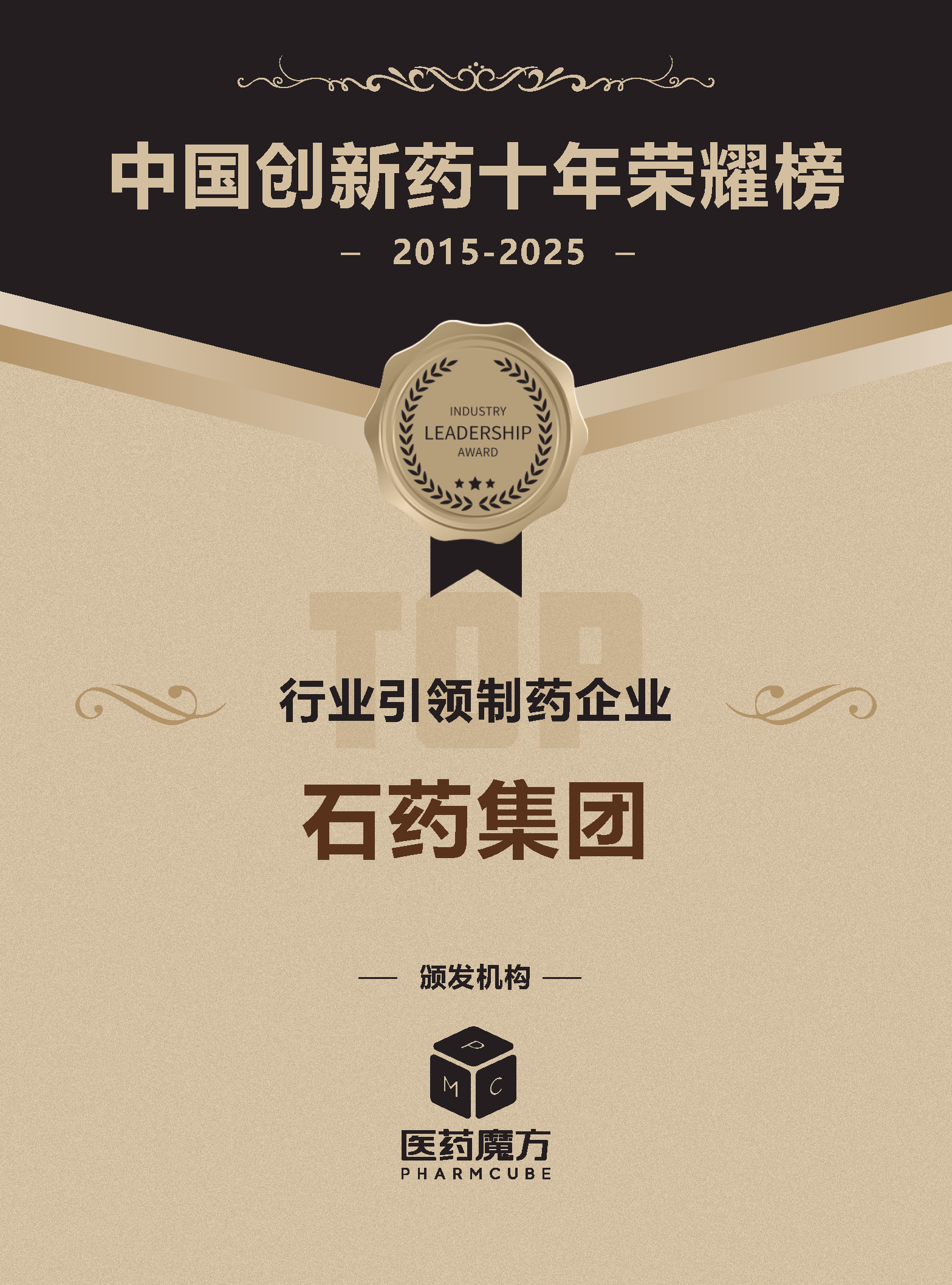 石藥集團獲評中國創(chuàng)新藥十年榮耀榜“行業(yè)引領制藥企業(yè)”