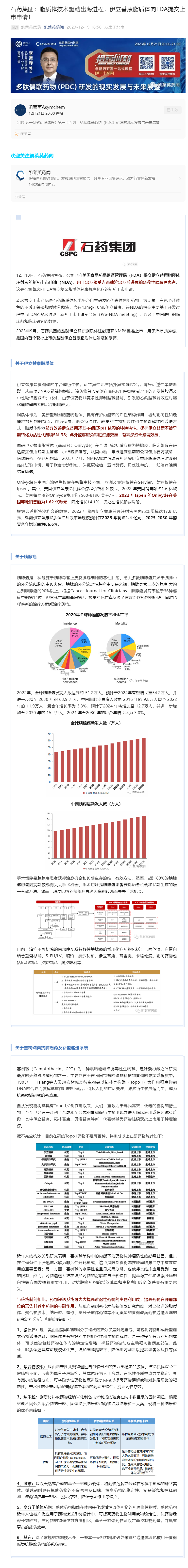 石藥集團:脂質(zhì)體技術驅(qū)動出海進程,伊立替康脂質(zhì)體向FDA提交上市申請!